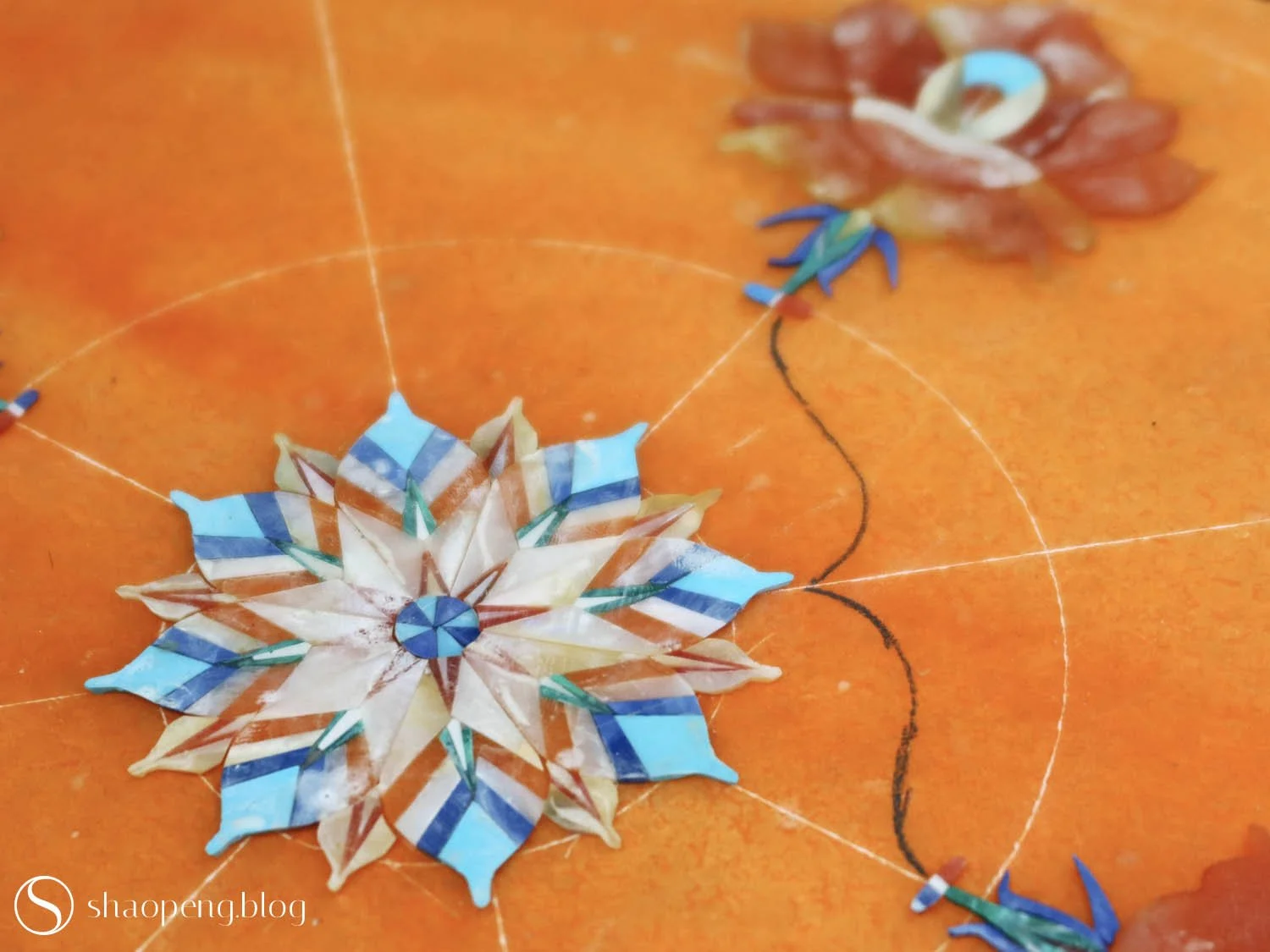 Of particular fascination was the use of carnelian. I was shown that, when slices of carnelian were inlaid into the marble surface, it became translucent, retaining its reddish-orange hue even in the dark when illuminated by a flashlight from behind. This sparked my imagination, leaving me to ponder just how captivating the Taj Mahal would appear with its carnelian inlay illuminated by the moonlight from outside.