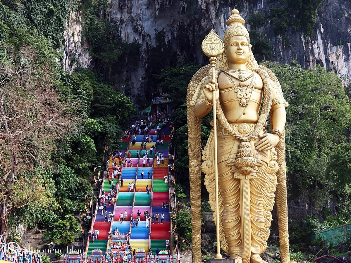 As visitors step into Batu Caves, the Sri Velayuthar Temple, dedicated to Lord Murugan, comes into view.